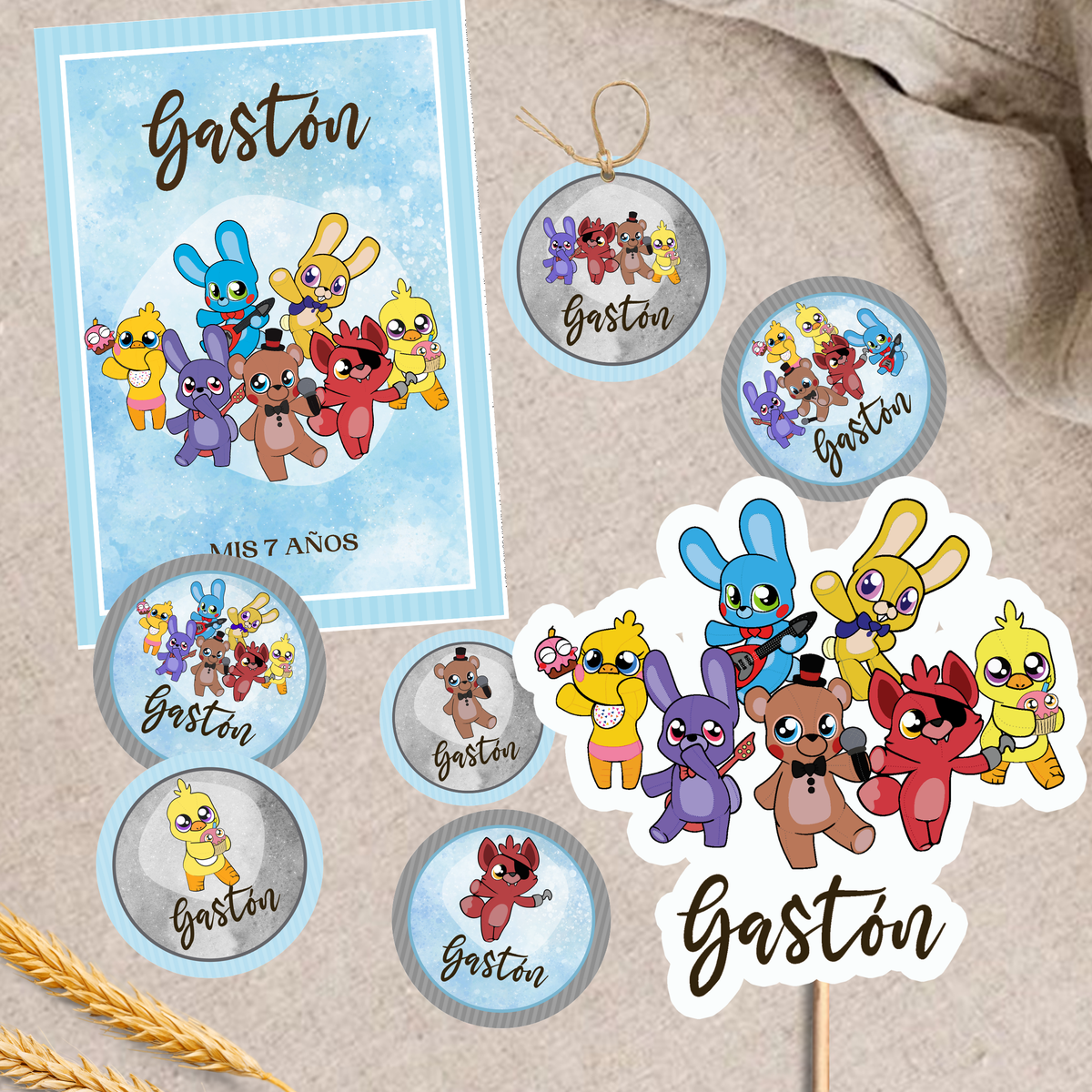 - El kit es tal como lo ves publicado, no hacemos cambios de personajes, tipografía o color.