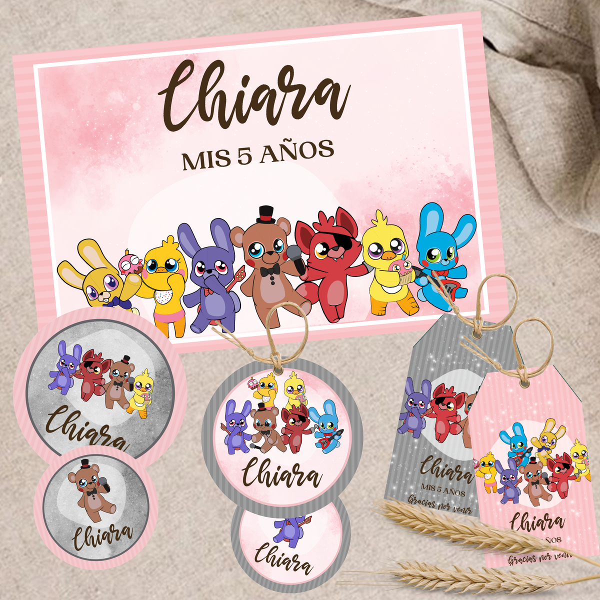 kit imprimible textos editables - FIVE NIGHTS AT FREDDY'S CHIBI ROSA