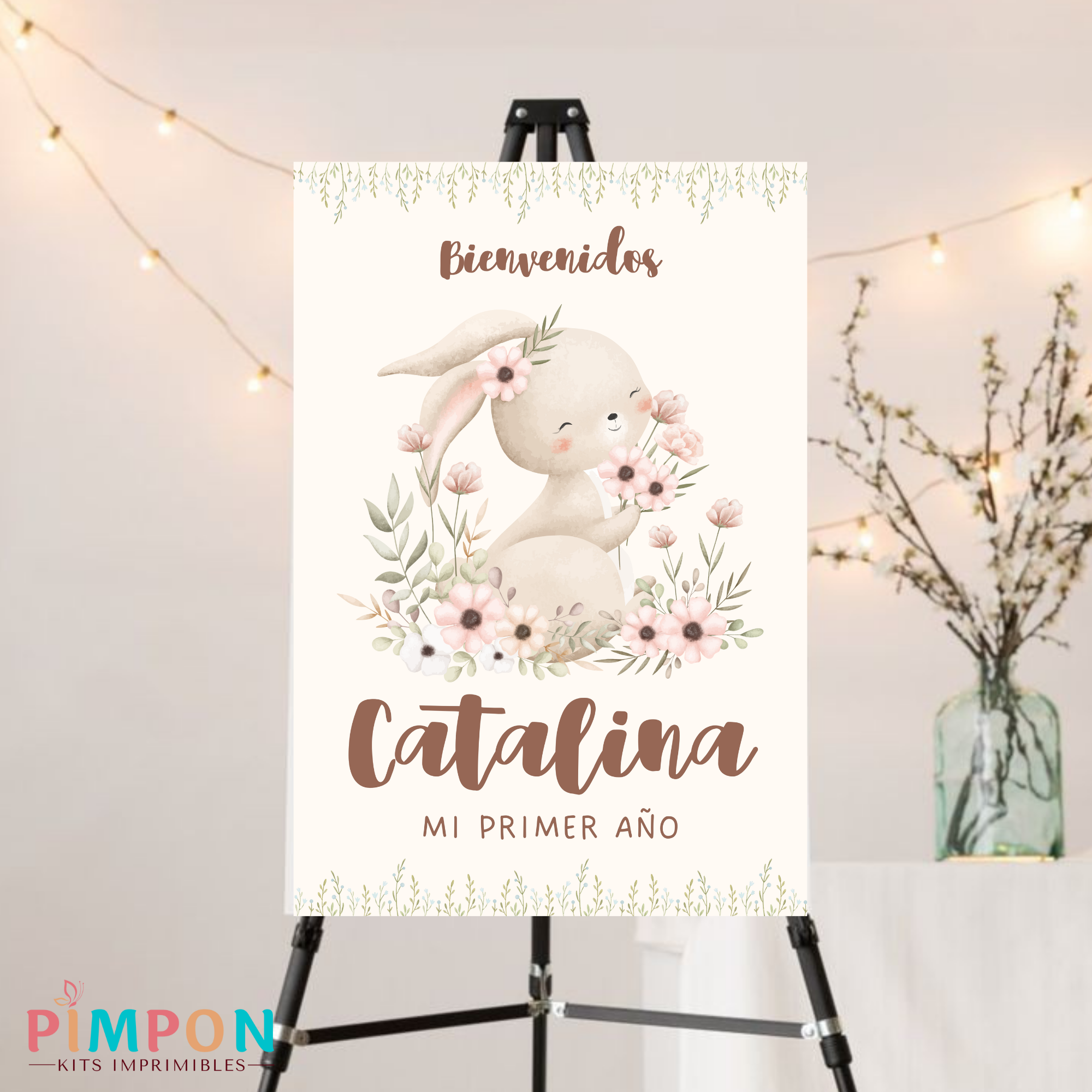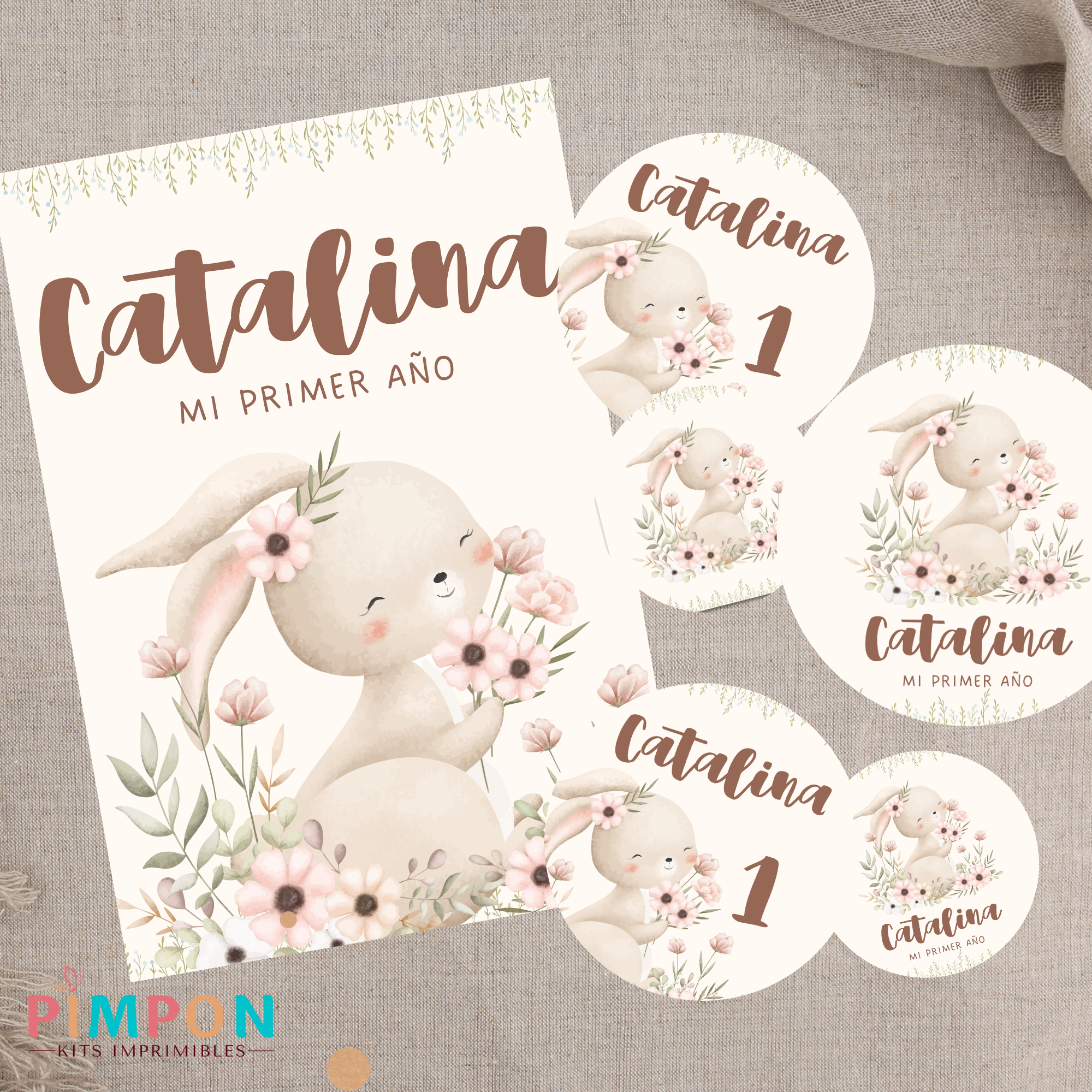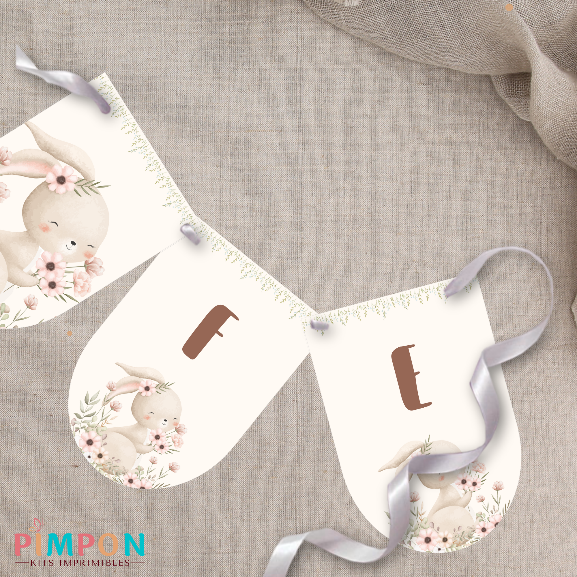 kit imprimible textos editables - ANIMALITOS - FLORAL CONEJO