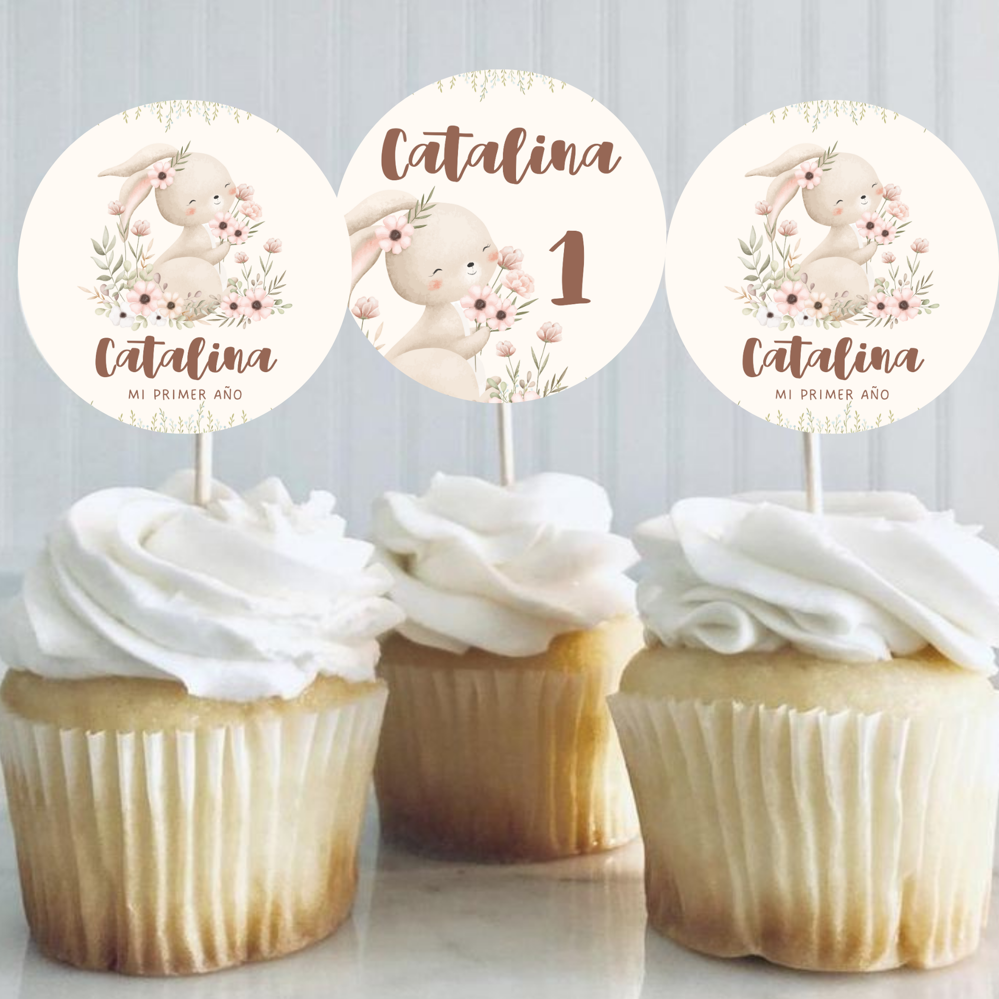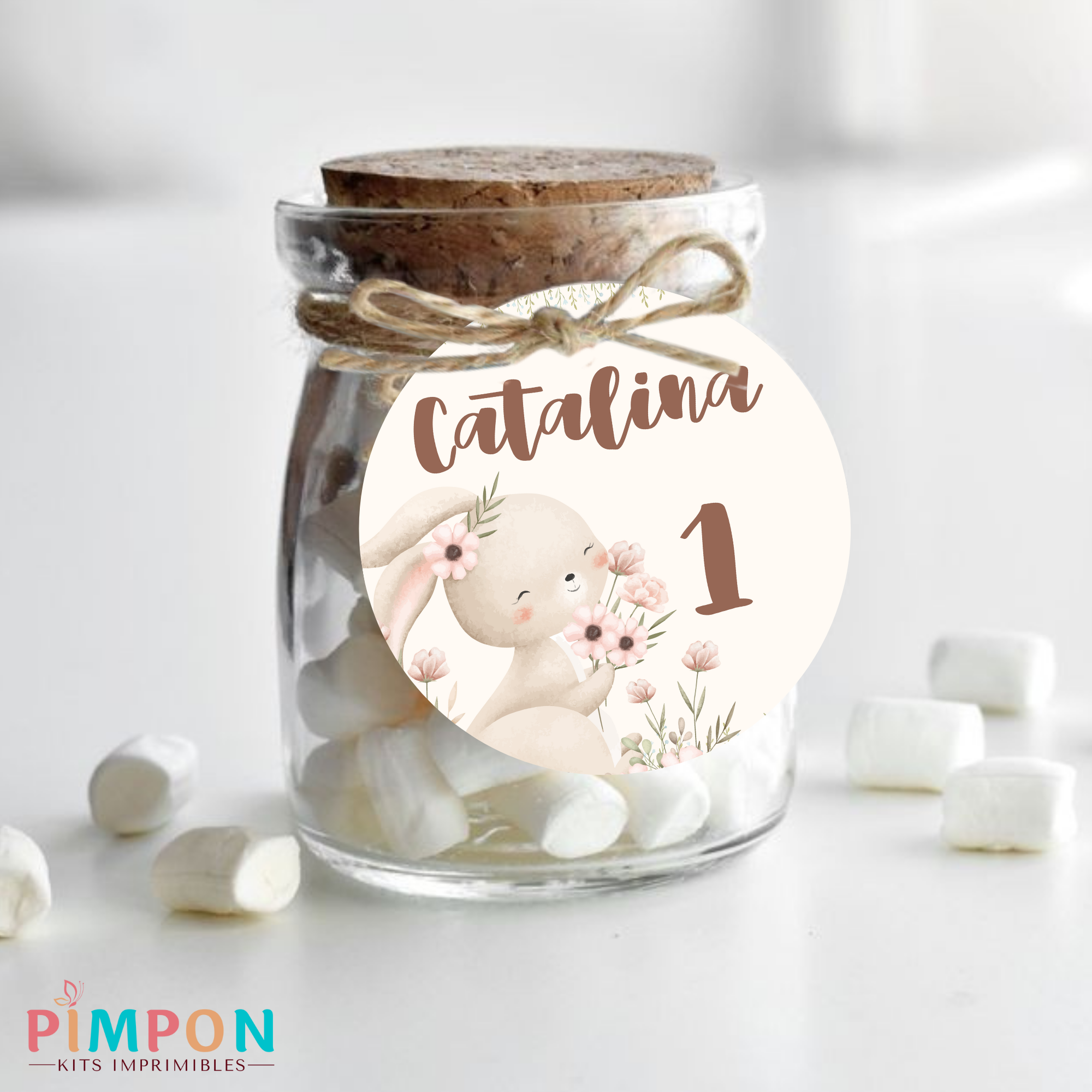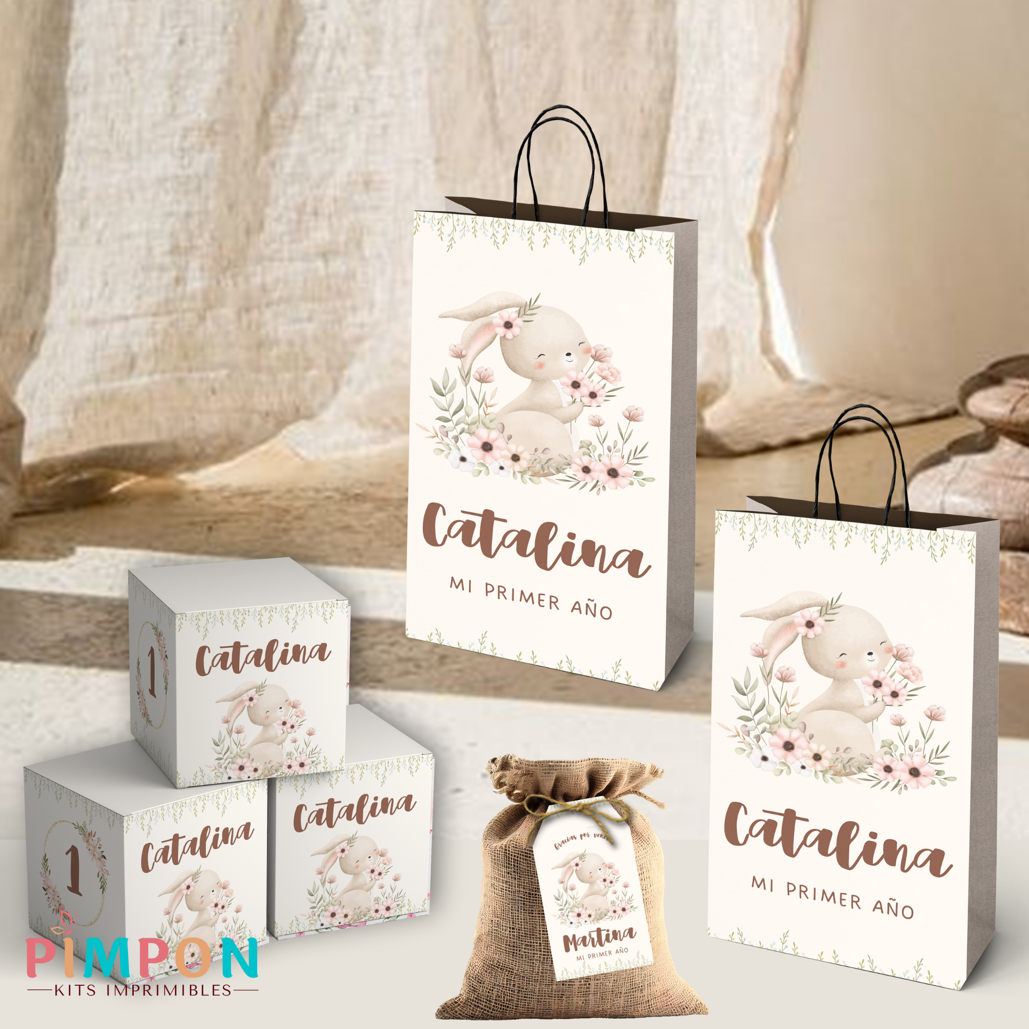 kit imprimible textos editables - ANIMALITOS - FLORAL CONEJO