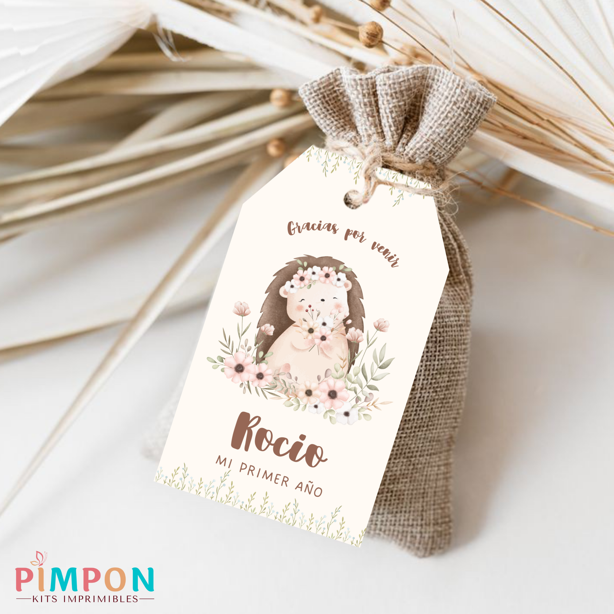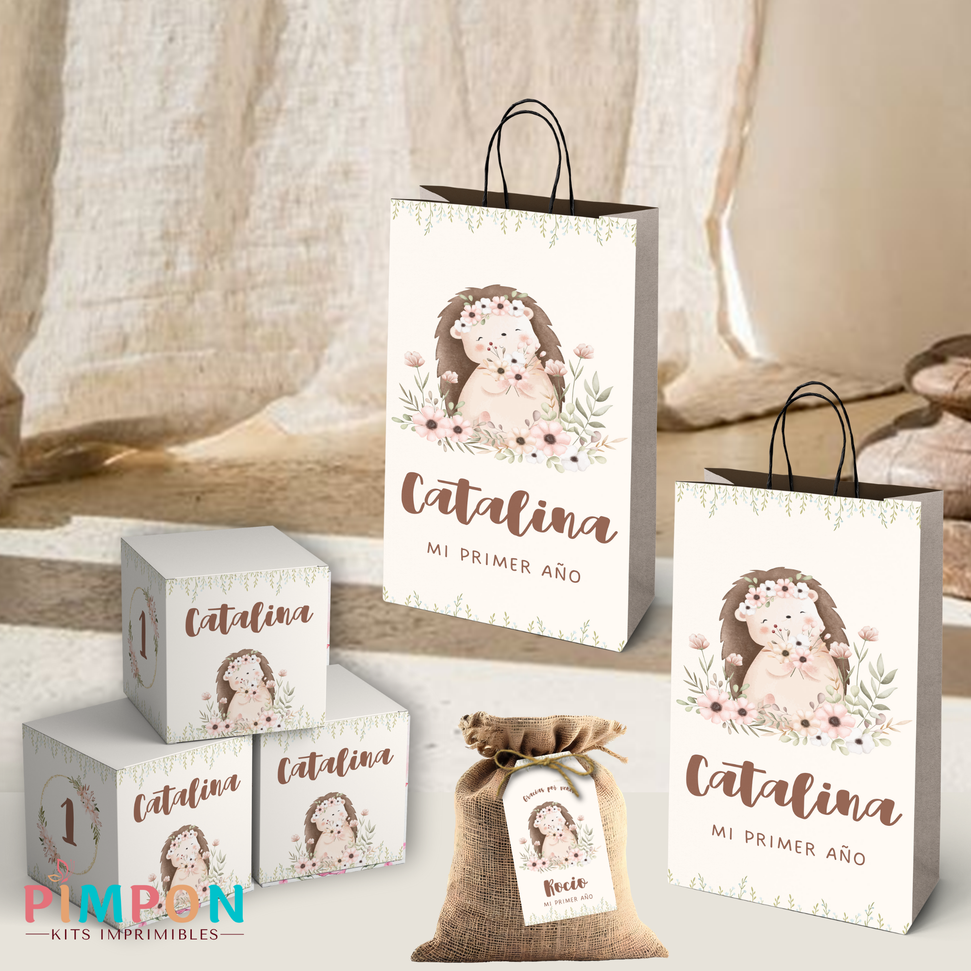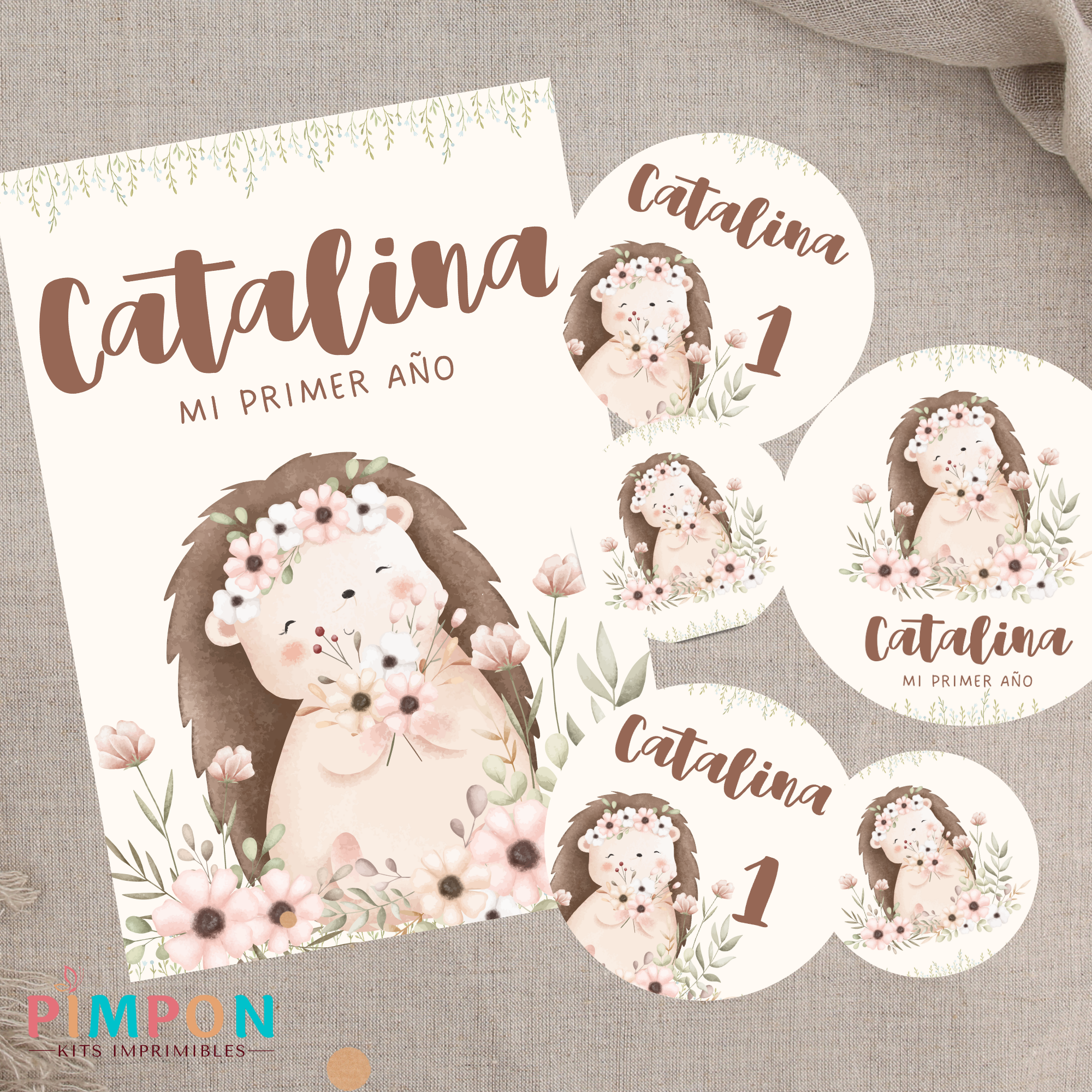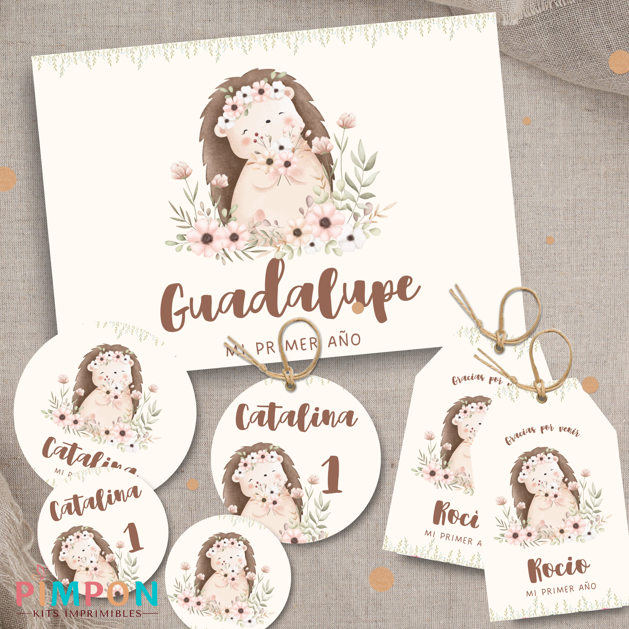 kit imprimible personalizado - ANIMALITOS - FLORAL PUERCOESPIN