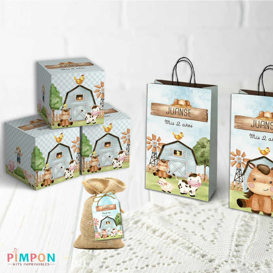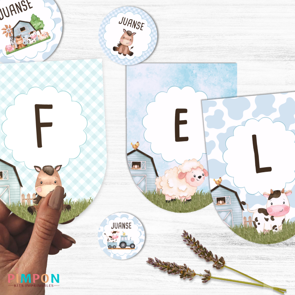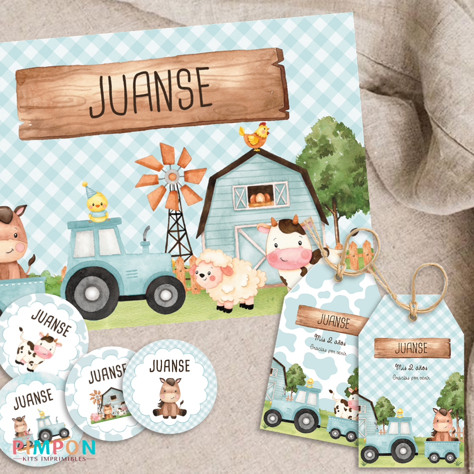 kit imprimible personalizado - GRANJA ACUARELA TURQUESA