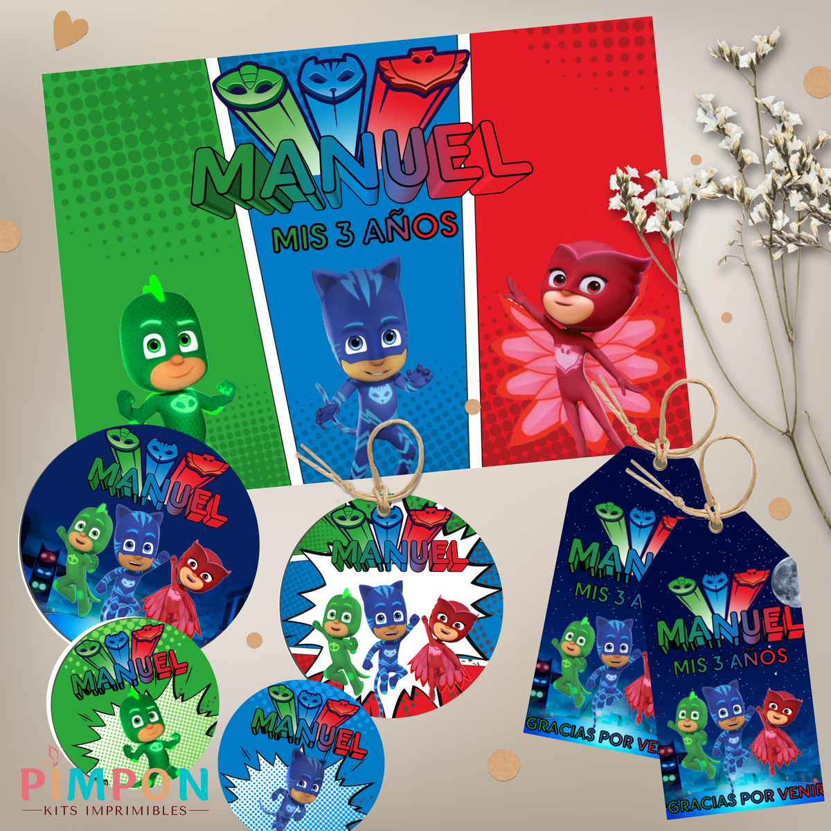 - El kit no es editable y se envia protegido con contraseña (solo se imprime con ADOBE READER), no se podrá usar en plotter de corte ni abrirlos en programas de diseño.