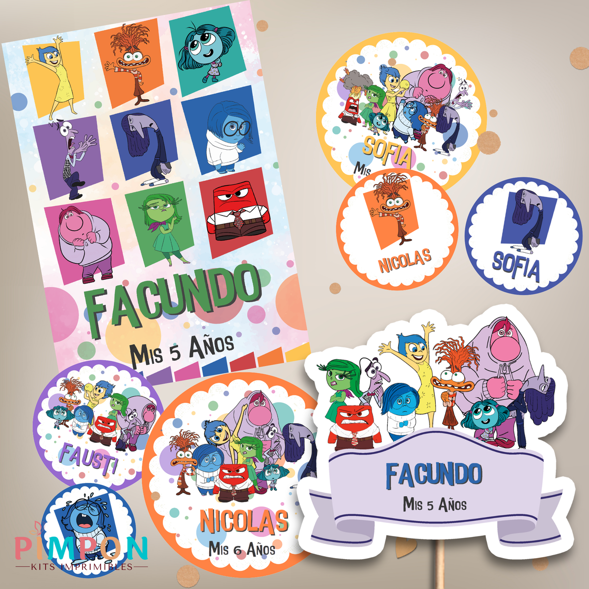 - El kit es tal como lo ves publicado, no hacemos cambios de personajes, tipografía o color.