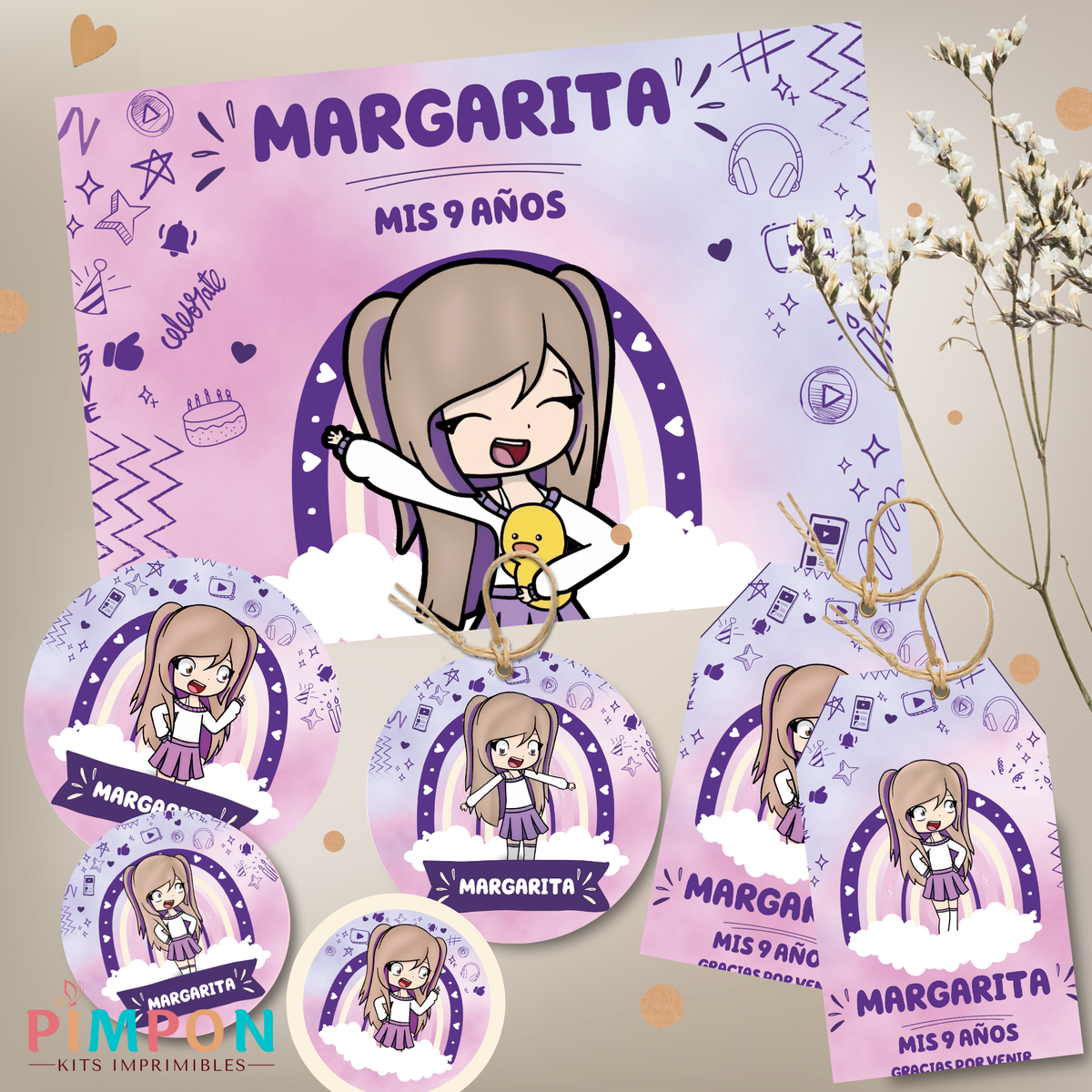 - El kit no es editable y se envia protegido con contraseña (solo se imprime con ADOBE READER), no se podrá usar en plotter de corte ni abrirlos en programas de diseño.