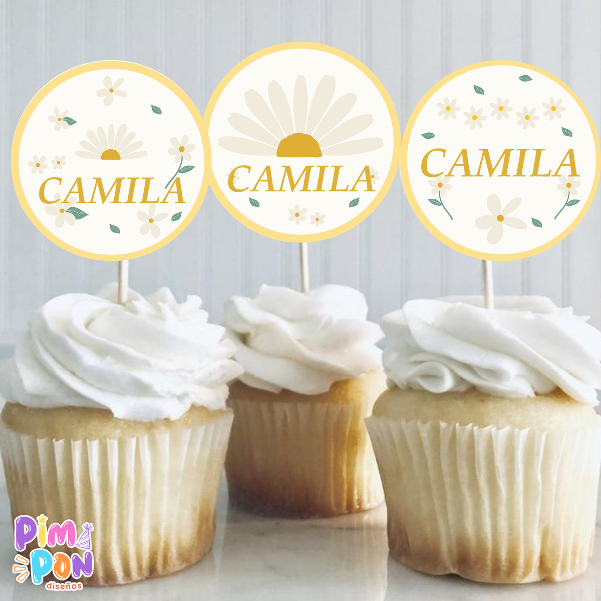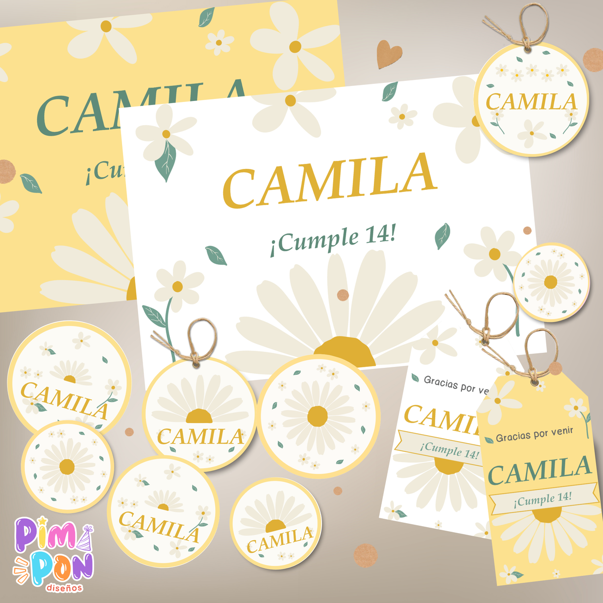 kit imprimible personalizado - FLORES - MARGARITAS MOD. 2 - AMARILLO