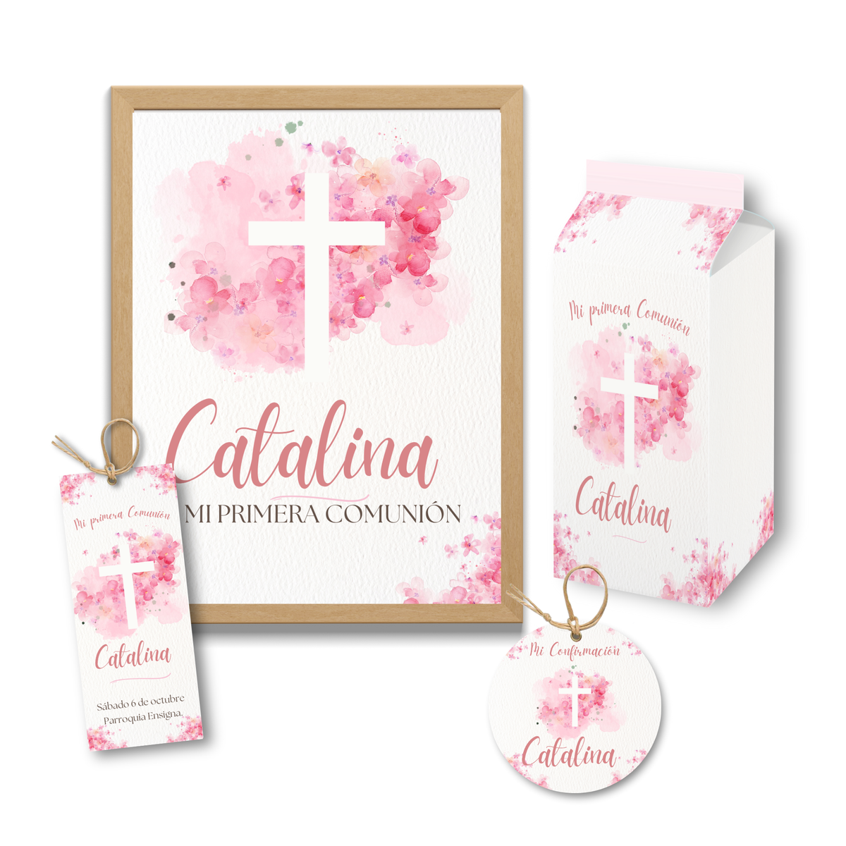 Banderin con evento (mi comunion, mi bautismo, etc)