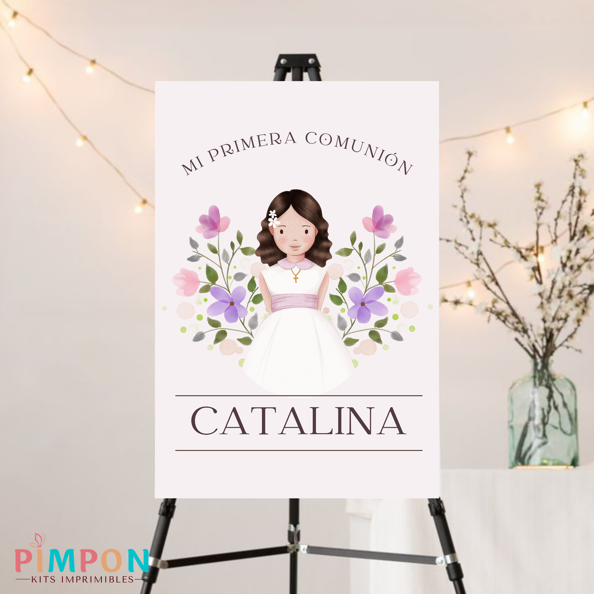 Banderin con evento (mi comunion, mi bautismo, etc)