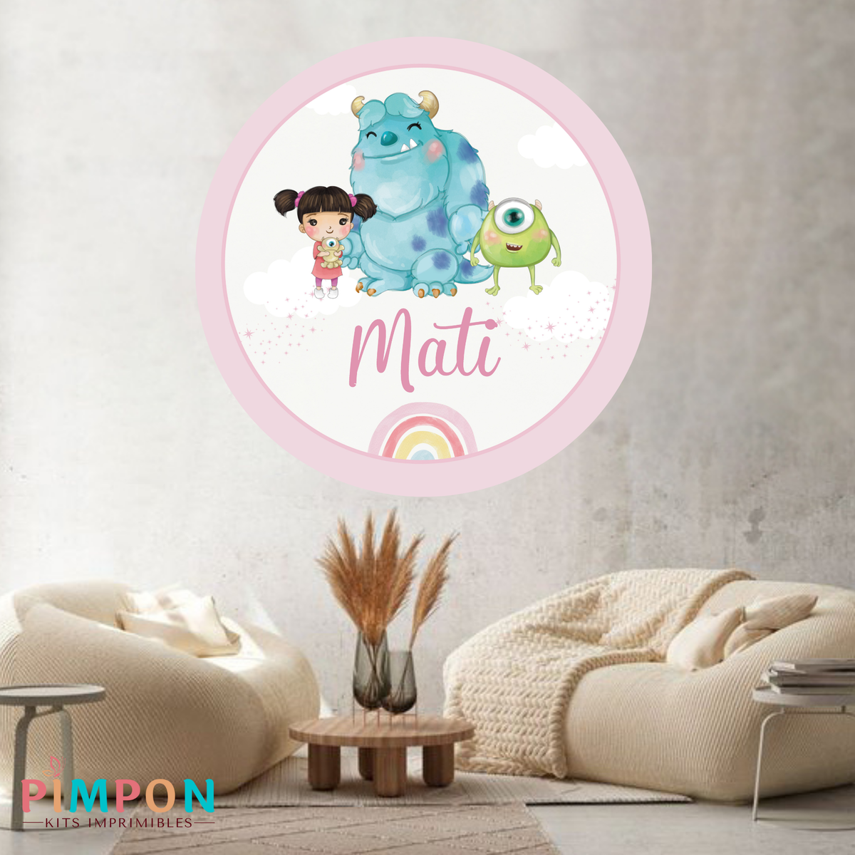 banner imprimible digital 1,20 mts - Monster inc acuarela rosa