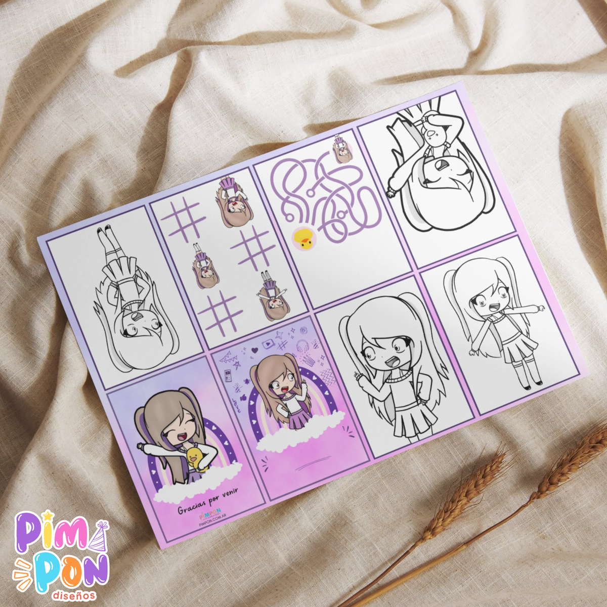 Un archivo PDF: incluye un juego imprimible en alta resolución personalizada con los datos del cumpleañero/a.