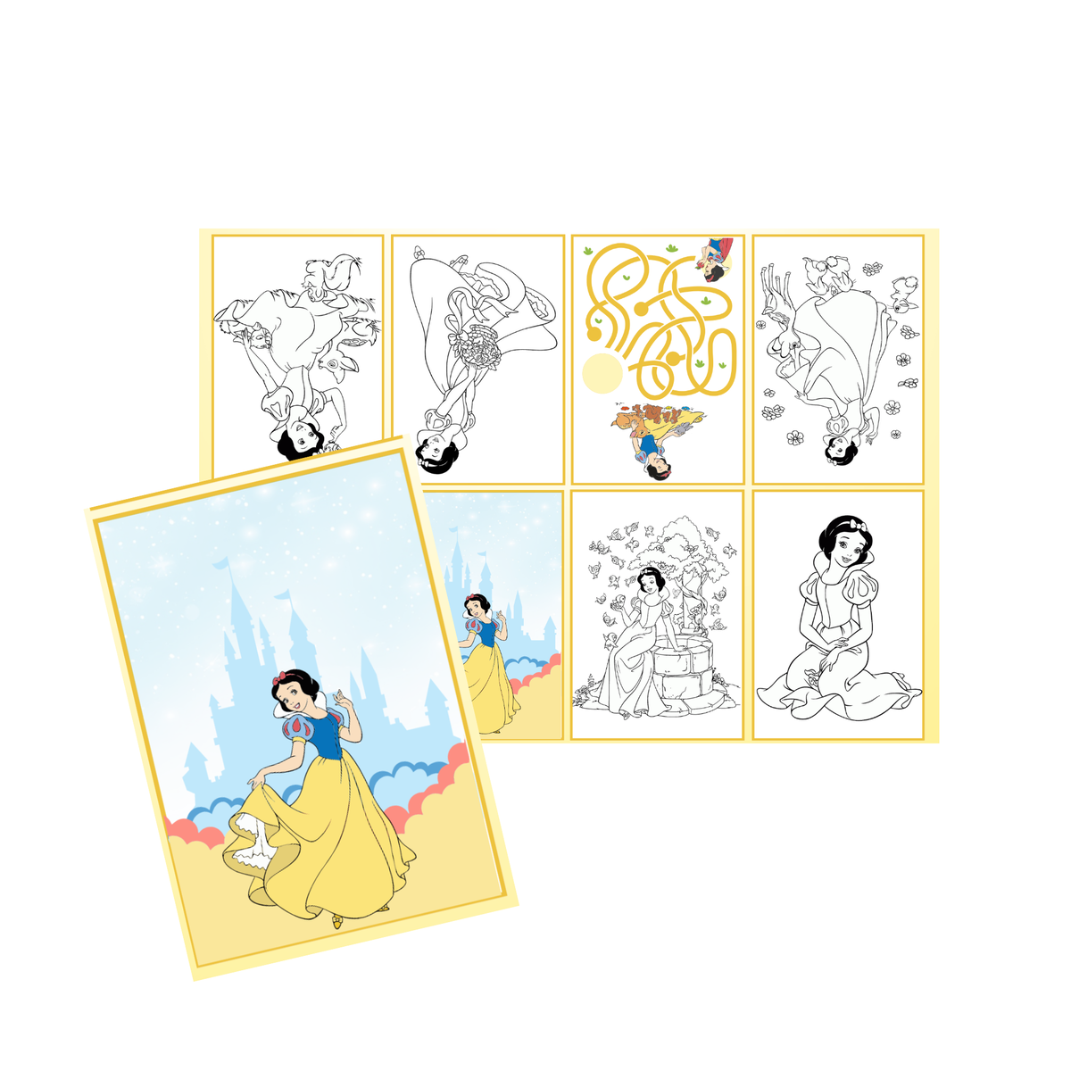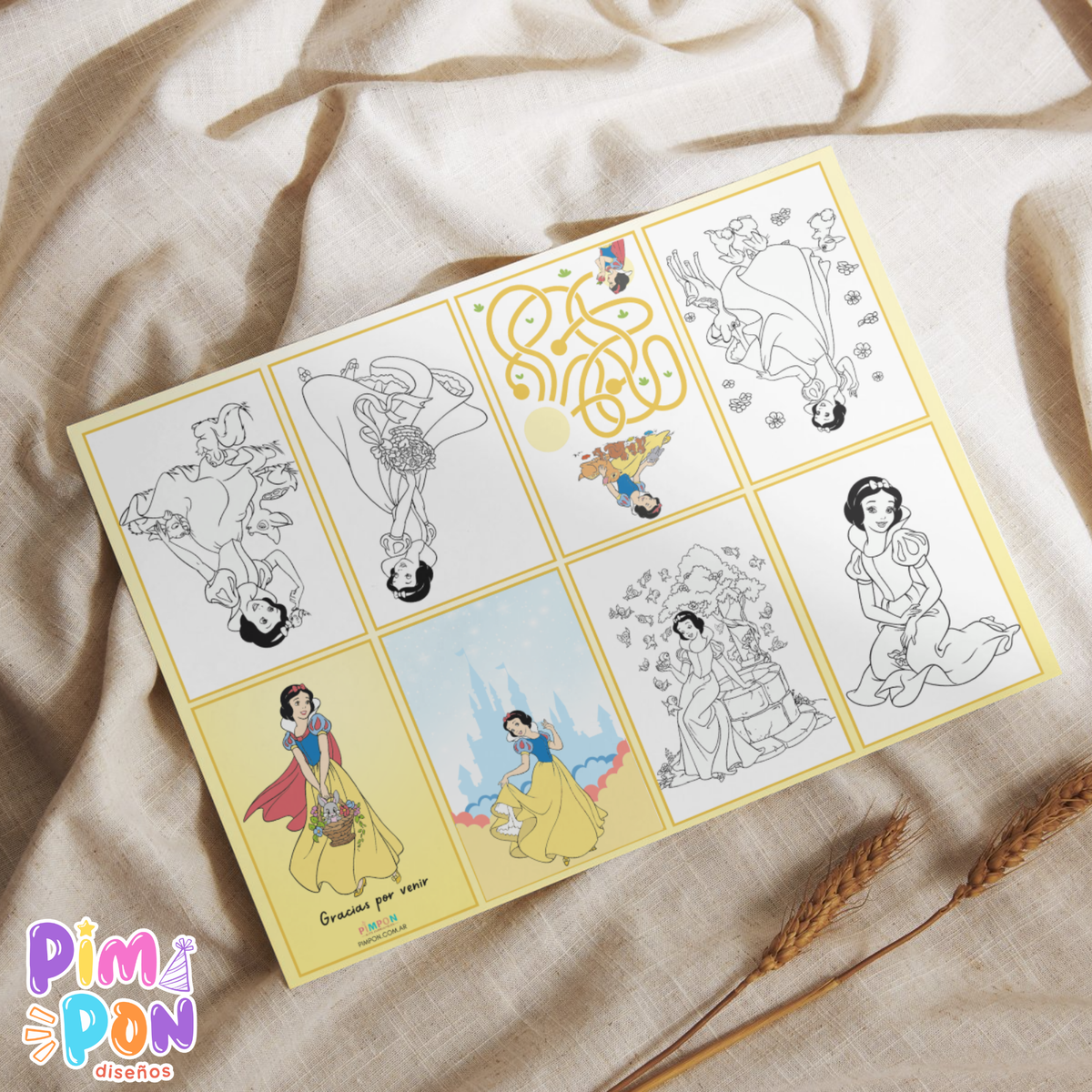 Juego imprimible - souvenir - mini libro para colorear blancanieves