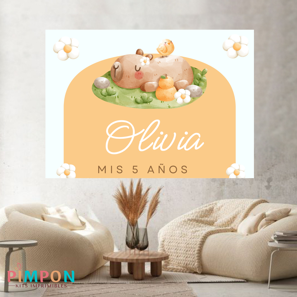banner imprimible digital 2x1,5 mts - capibara flores
