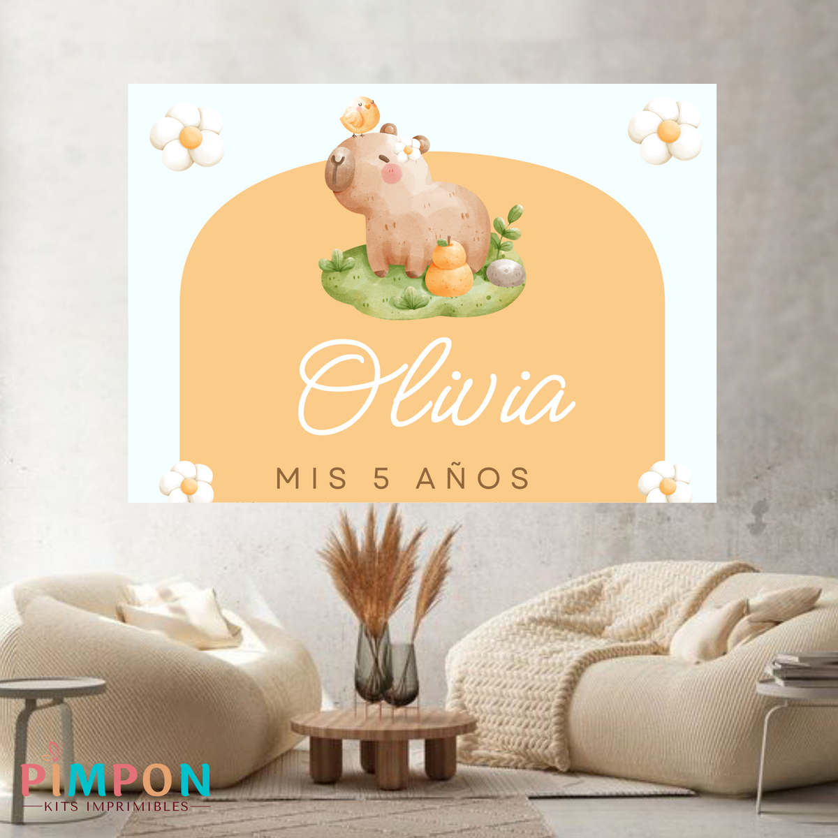 banner imprimible digital 2x1,5 mts - capibara flores