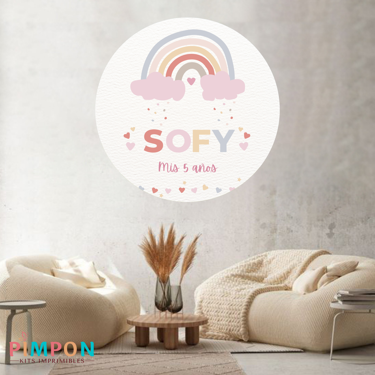 banner imprimible digital 1,20 mts - arcoiris pastel