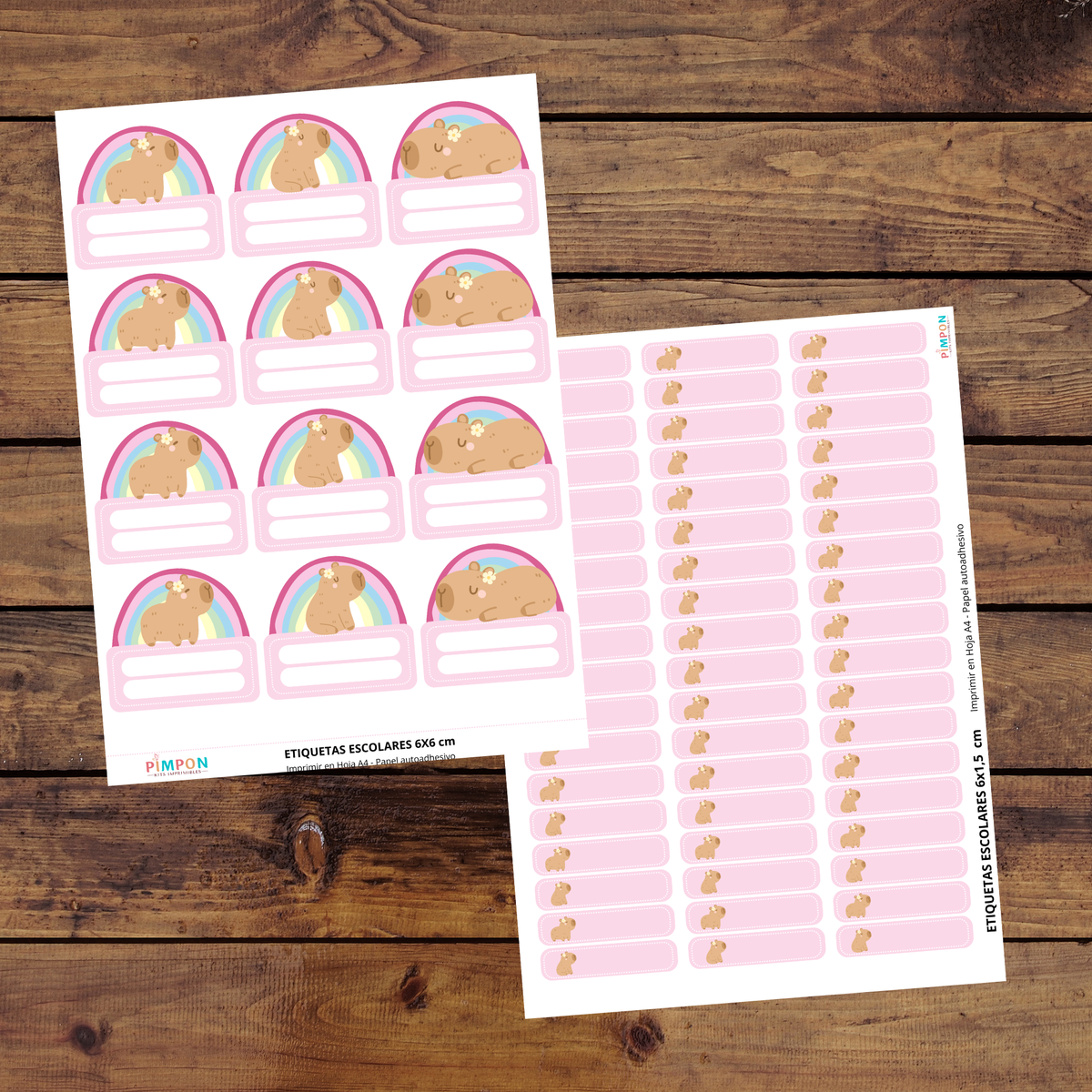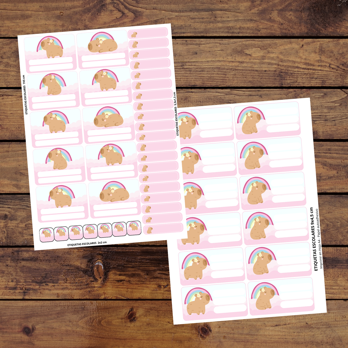 etiquetas escolares editables - capibara arcoiris