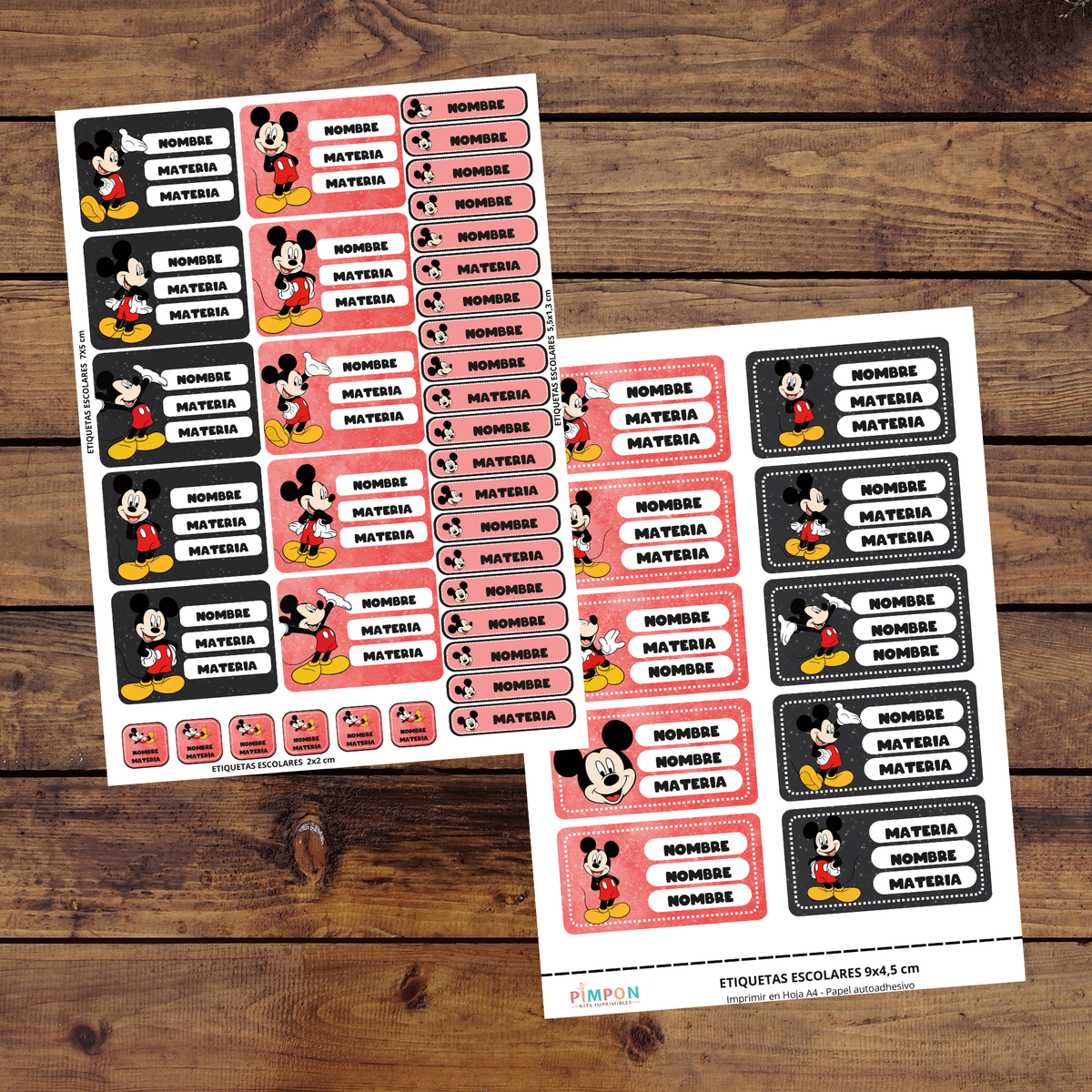 etiquetas escolares editables - mickey mouse