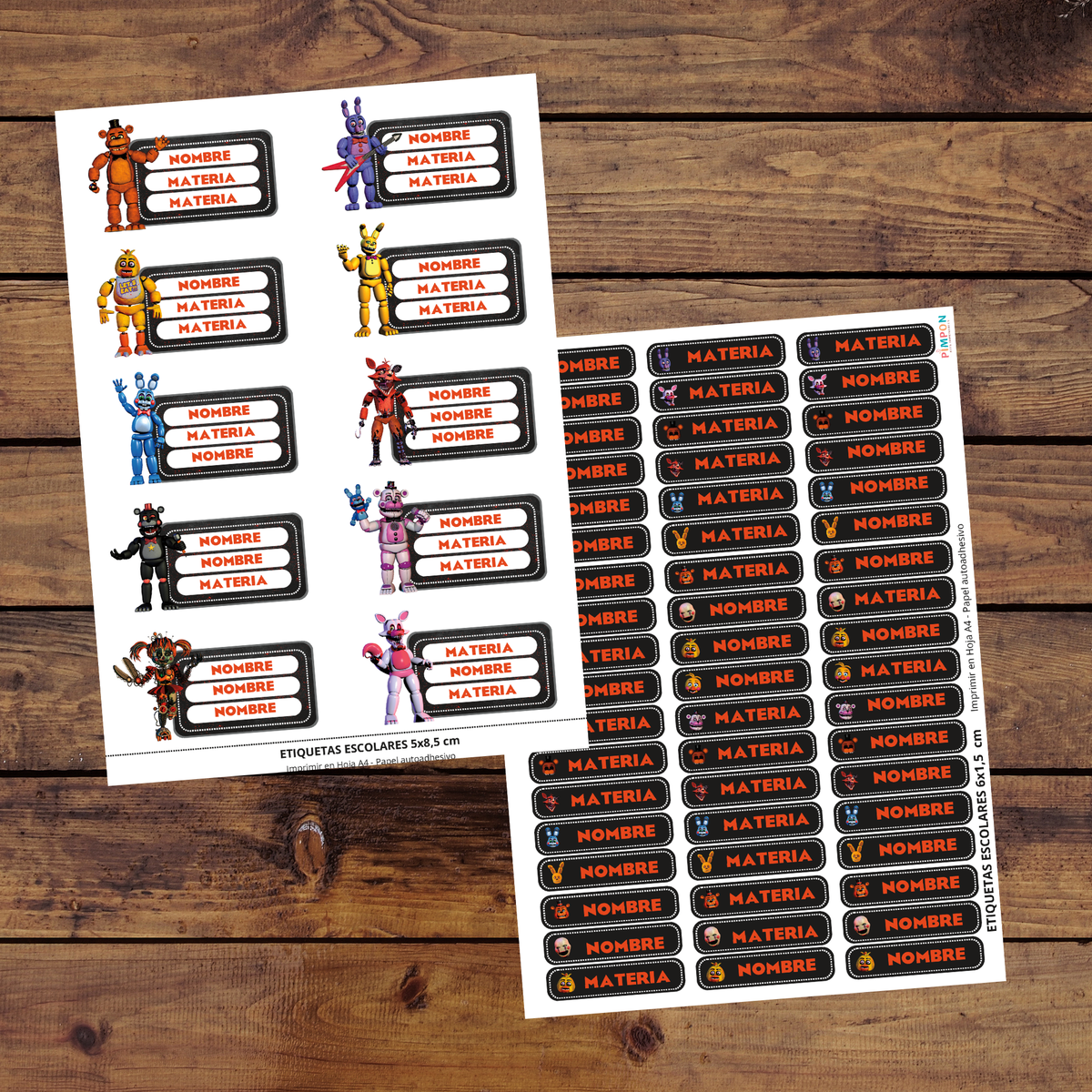 etiquetas escolares editables - five nights at freddy